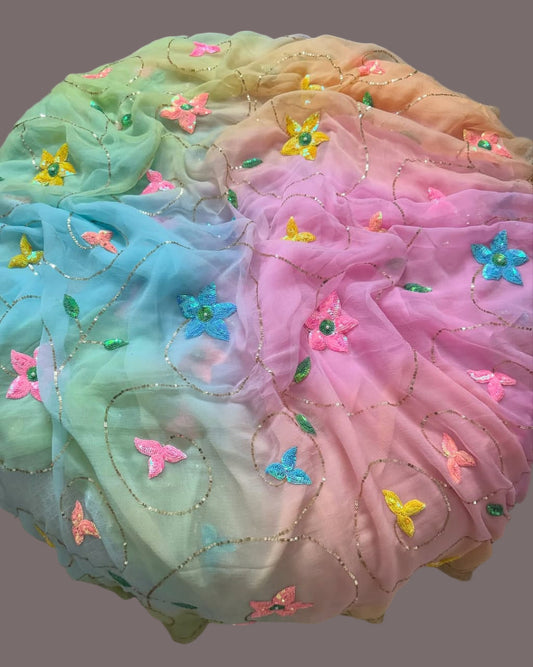 Sana Rainbow Sequin Chiffon Saree