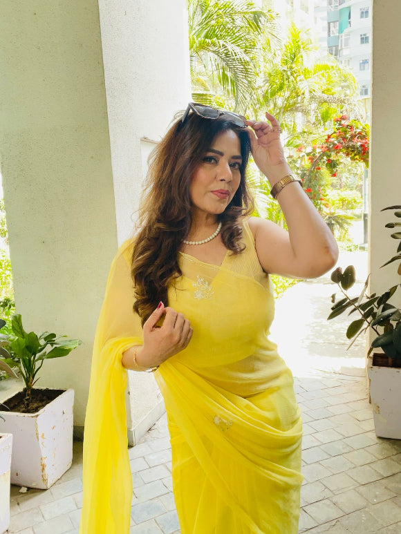 Elevate your style with our Adhya Pure Diamond Chiffon Saree. This elegant saree features intricate floral bead-cut Dana &bpearl handwork and a beautiful kinara border. Made with pure chiffon, it will add a touch of grace and charm to any occasion.