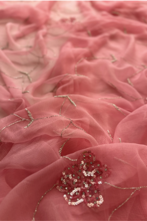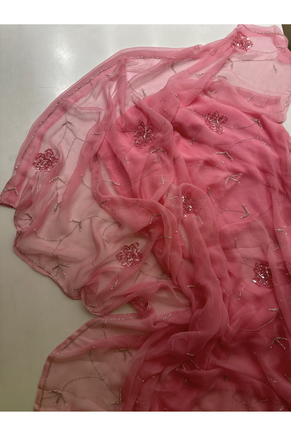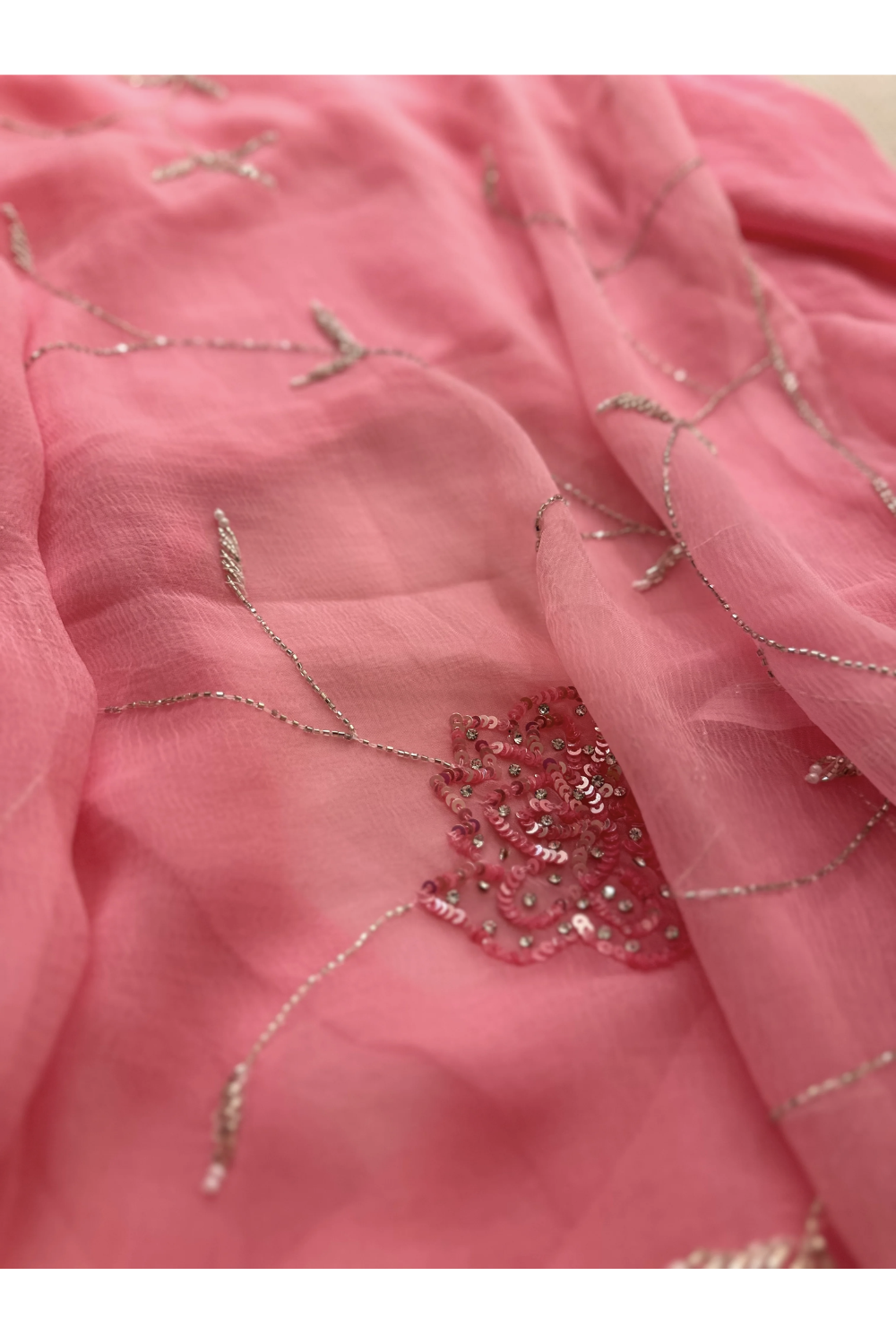 Indulge in luxury with our Dahilia Pure Chiffon Saree. Adorned with beautiful Sequins flowers and cutdana zaal work, this pure chiffon saree is the epitome of elegance. Perfect for weddings and special occasions, it will make you feel like a work of art.