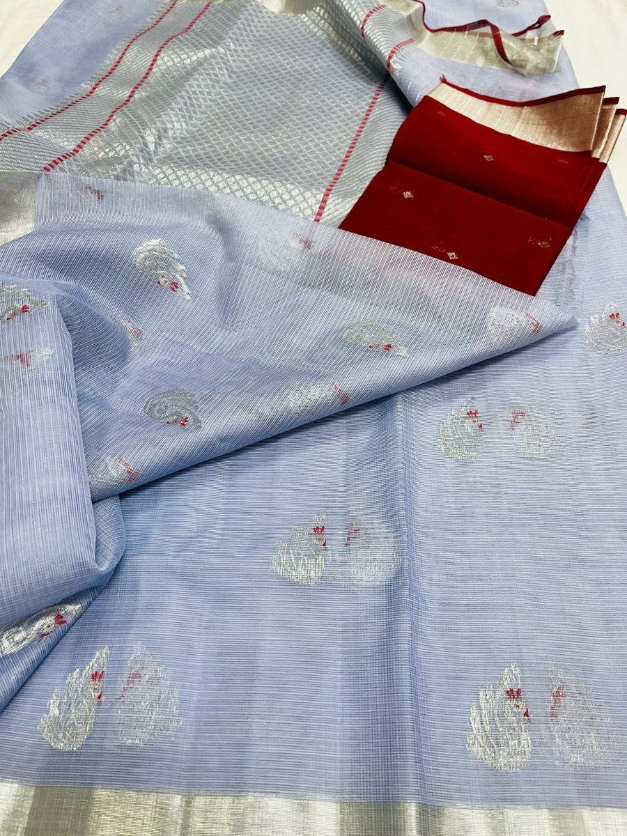 Expertly crafted and designed, the Jayanti Saree features a stunning pastel shade with a swan pure zari work Botti, adding a touch of elegance and sophistication. The heavy pallu is adorned with intricate detailing, while the contrast red blouse completes the look. Perfect for any occasion, this saree is a must-have for any wardrobe.