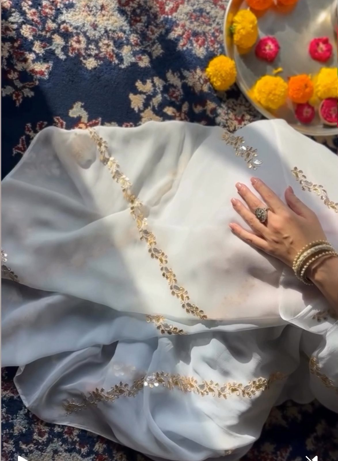 Indulge in luxury with our Neera Gotta Pure Chiffon Saree. Crafted from pure chiffon, this saree features exquisite handwork with gotta and sequins, adding a touch of opulence to your wardrobe. Elevate your style and make a statement at any occasion.