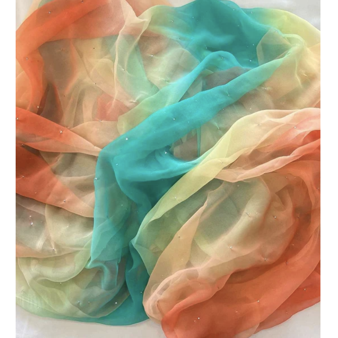 Indulge in elegance with our Plain Pure Chiffon Saree. This stunning saree features ombre shades in soft pastel colors, giving it a subtle yet eye-catching look. Made from pure chiffon, this saree is lightweight and drapes beautifully, making you feel like royalty. Perfect for any occasion, this saree is a must-have in every wardrobe.