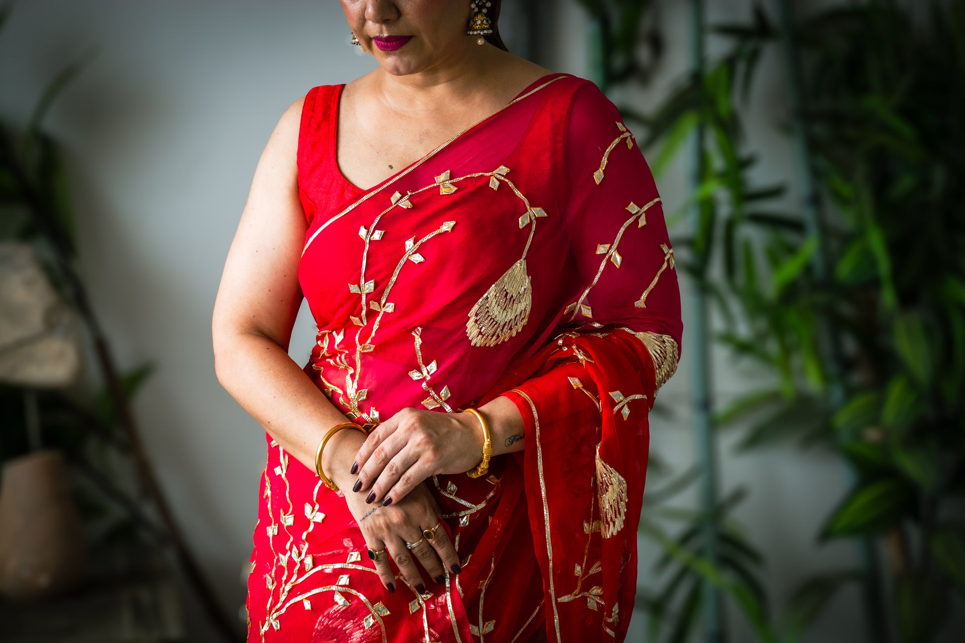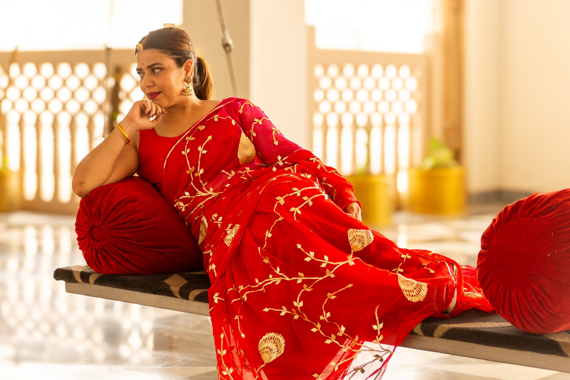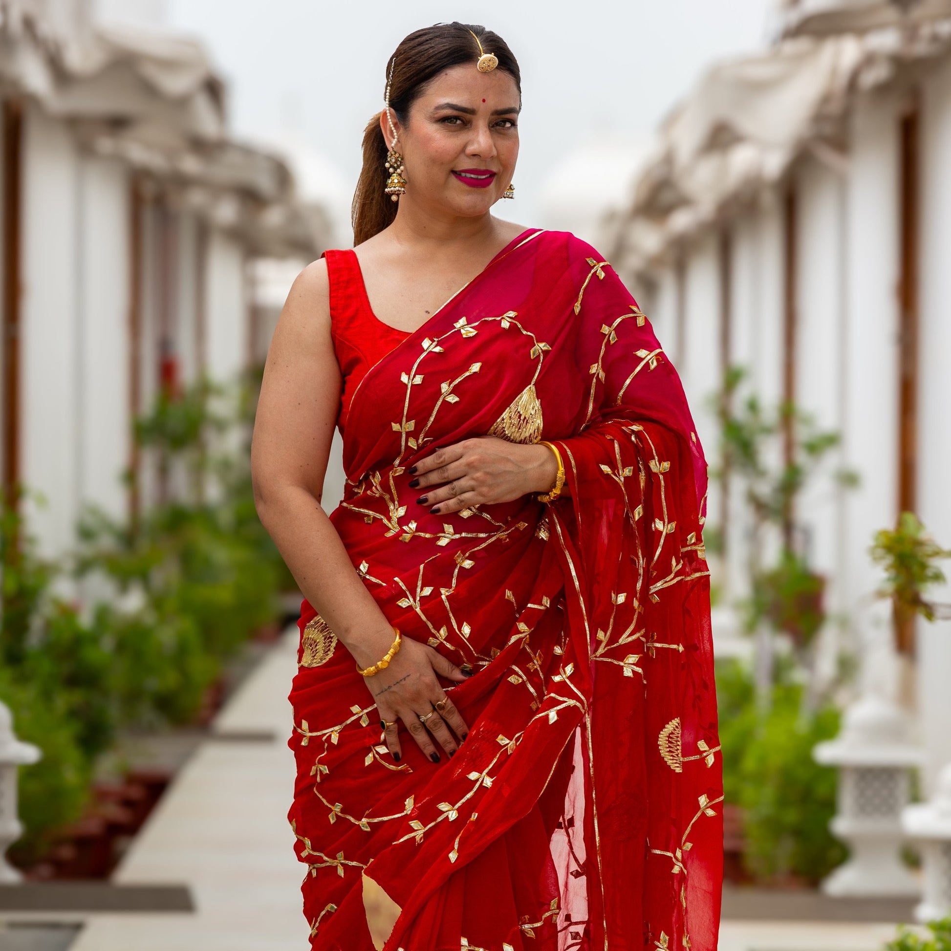 Red Gotta Patti Chiffon Saree