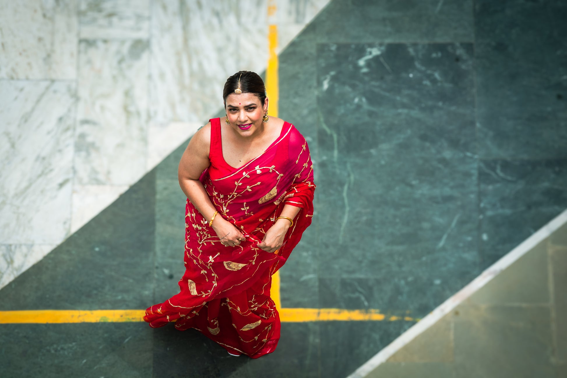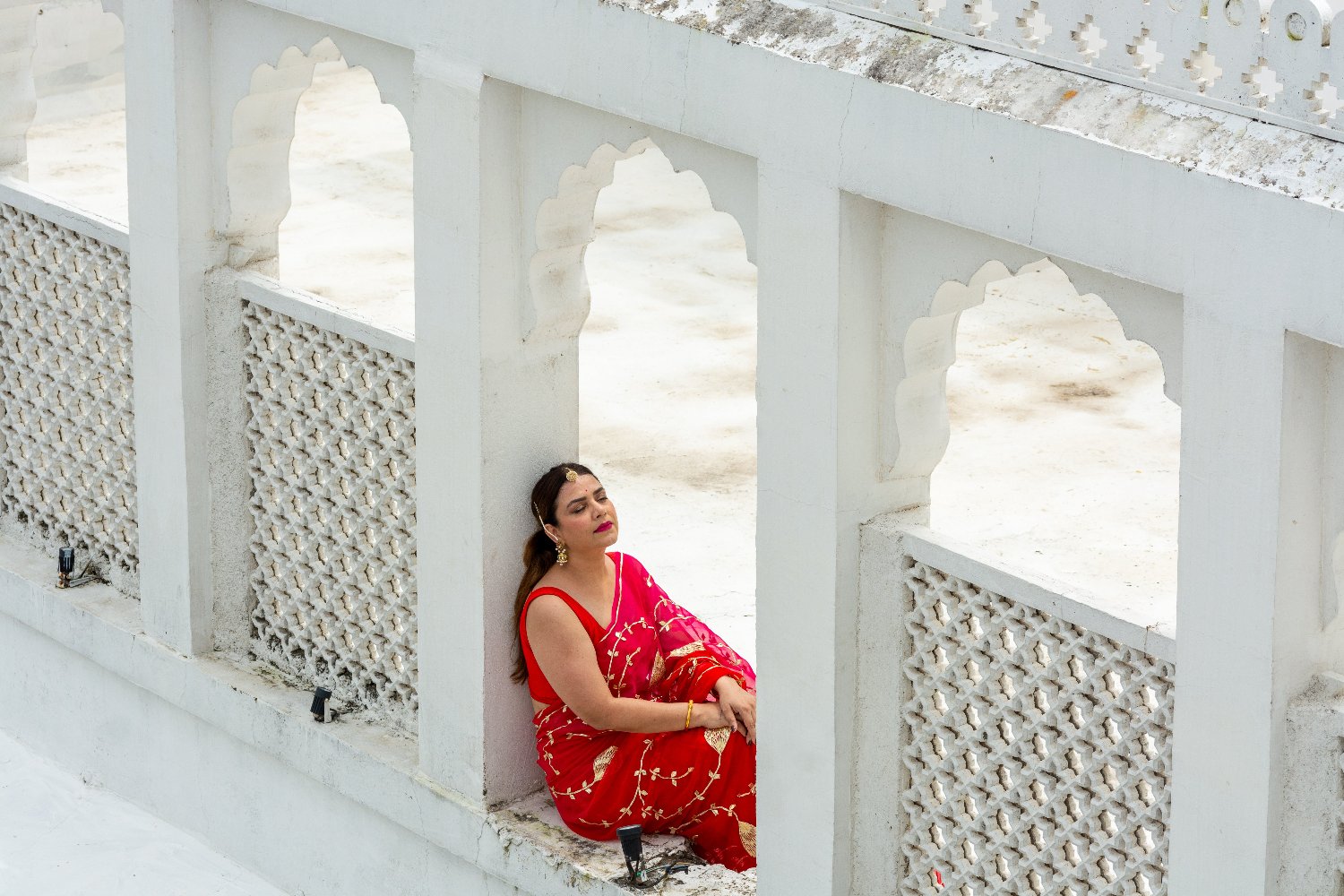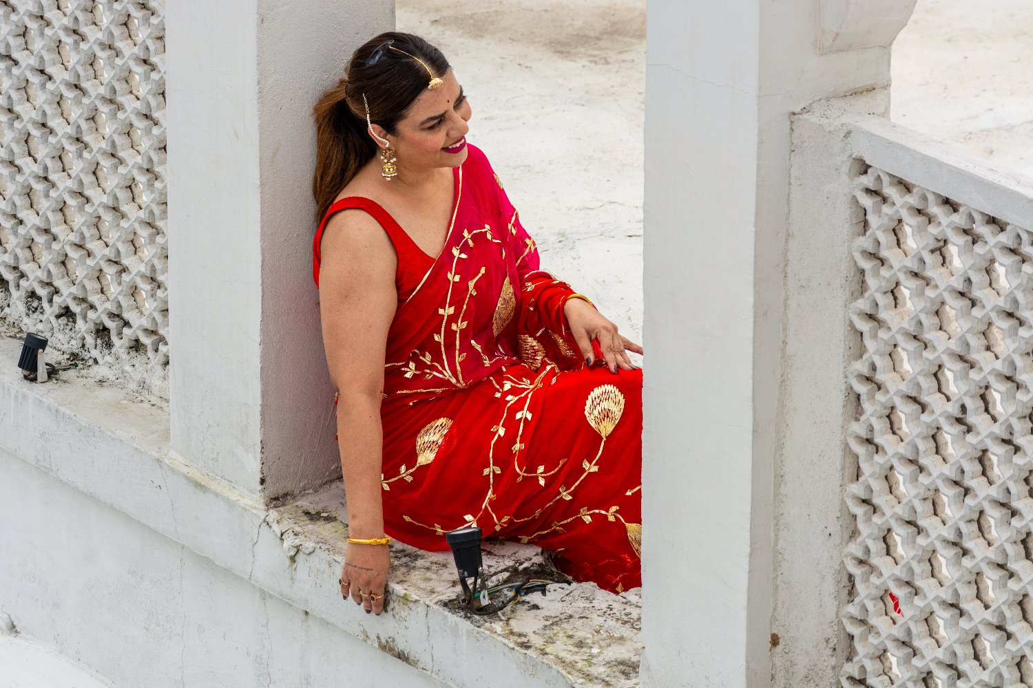 Red Gotta Patti Chiffon Saree