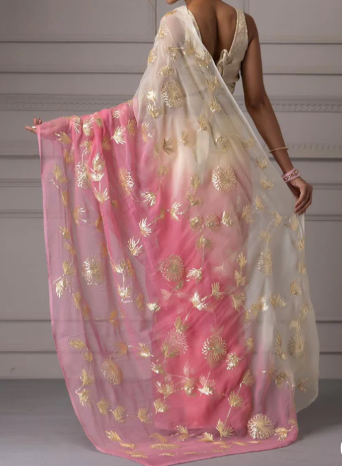 Indulge in luxury with our Roohan Gotta Patti Chiffon Saree. This exquisite saree features delicate chiffon adorned with intricate tara Gotta Patti Zaal hand work, adding a touch of elegance to any occasion. Elevate your style and embrace sophistication with this must-have piece.