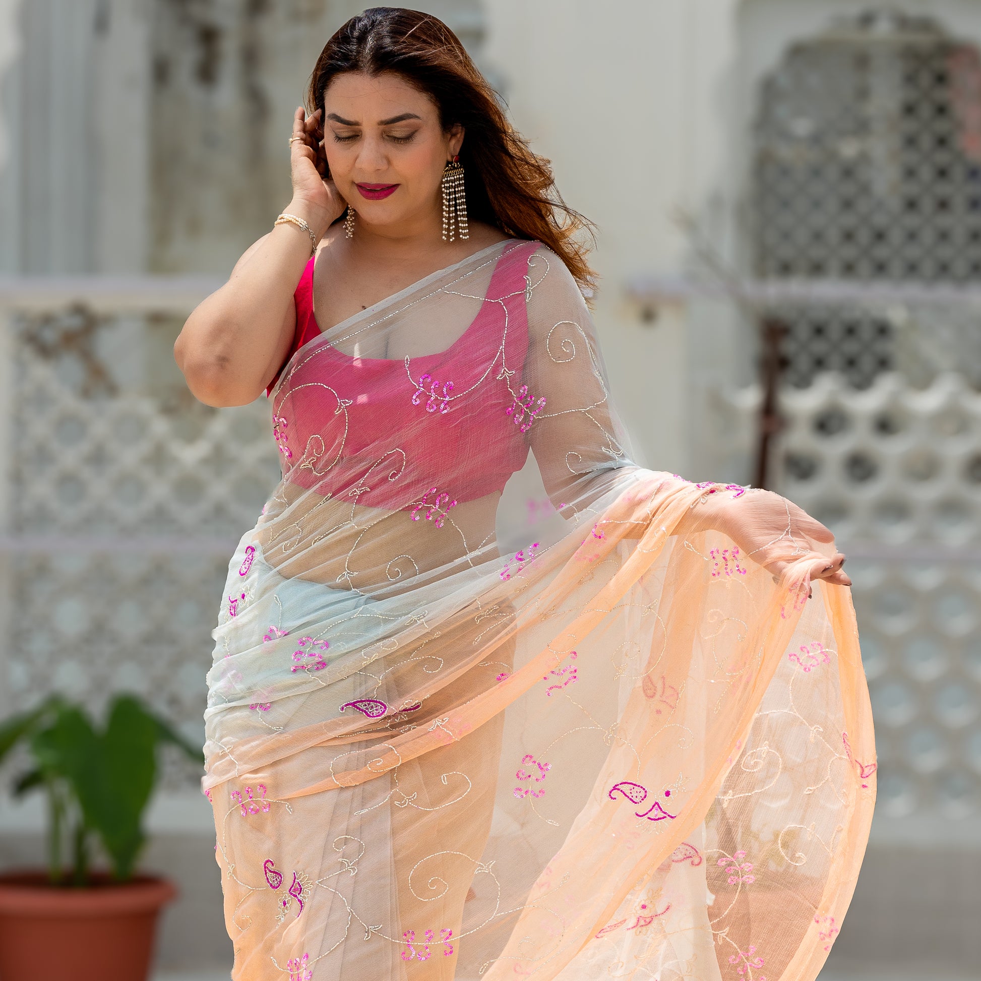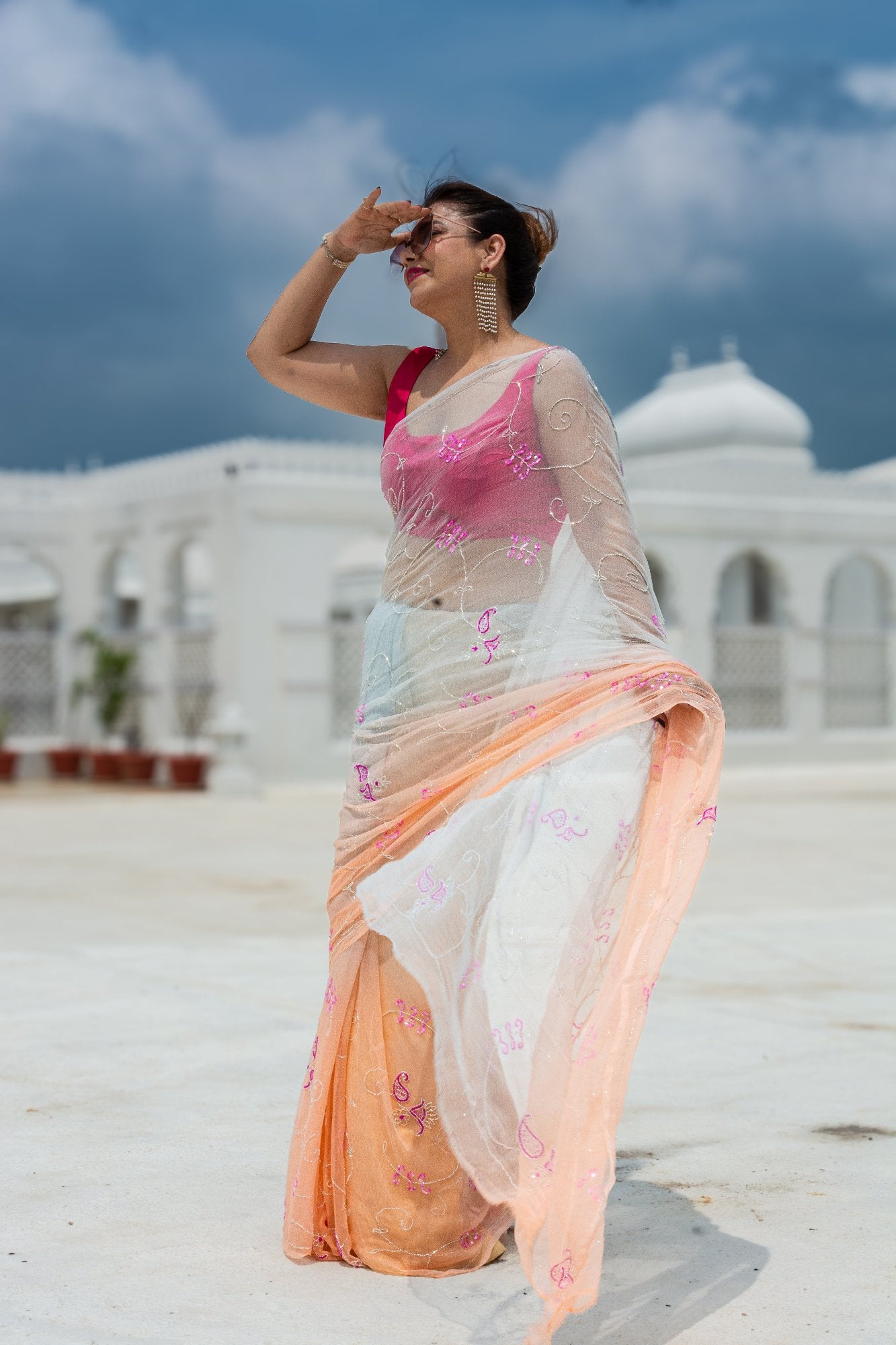 Indulge in sophistication with our Unicorn Cutdana Pure Chiffon Saree. Adorned with intricate unicorn cutdana zaal handwork, this saree boasts pastel shades for a dreamy and elegant look. Made from pure chiffon, it exudes luxury and exclusivity. Elevate your style with this masterpiece.